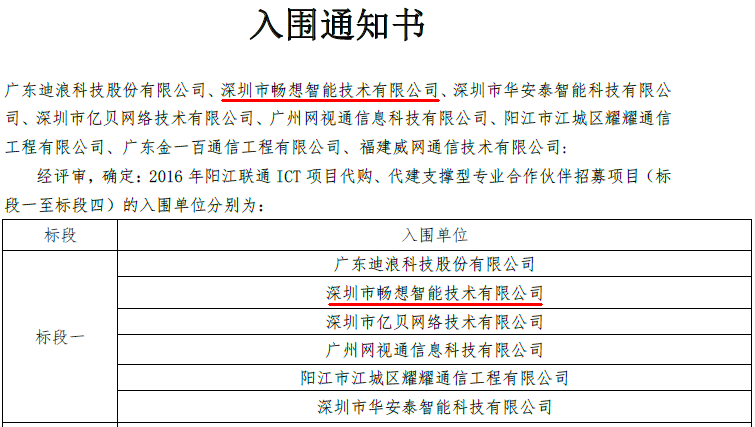 恭喜我司入围2016年阳江联通ICT项目合作伙伴