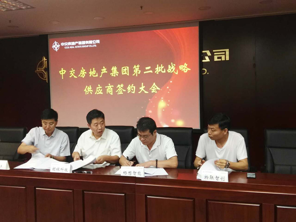 2018年6月15日,北京中交房地产集团与深圳市畅想智能技术有限公司战略合作签约仪式在北京市西城区德外大街甲5号中天大厦隆重举行,中交房地产集团领导、项目管理中心人员及各战略合作供应商代表亲临签约现场,共同见证并进行了签约仪式。
